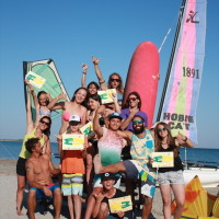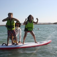 Εκεί συνάντησε το προσωπικό του Surf Club Keros , που με την εμπειρία των τελευταίων ετών, τις άριστες παιδαγωγικές και εκπαιδευτικές γνώσεις του, αλλά και το σύγχρονο εξοπλισμό που διαθέτει, μαθαίνει στους μικρούς surfers τα μυστικά του Surf, του Wind-surf και του Kite-Surf!